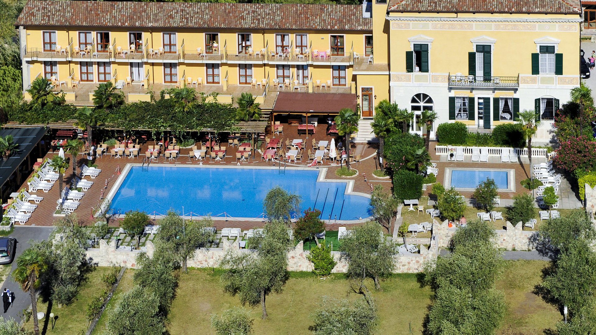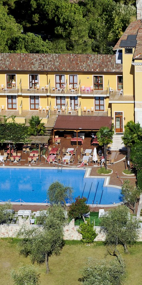 Lage: Inmitten eines Blumenparks mit typisch mediterraner Vegetation, 100 m vom Seeufer entfernt, in einem ehemaligen Kloster aus dem 14. Jh.