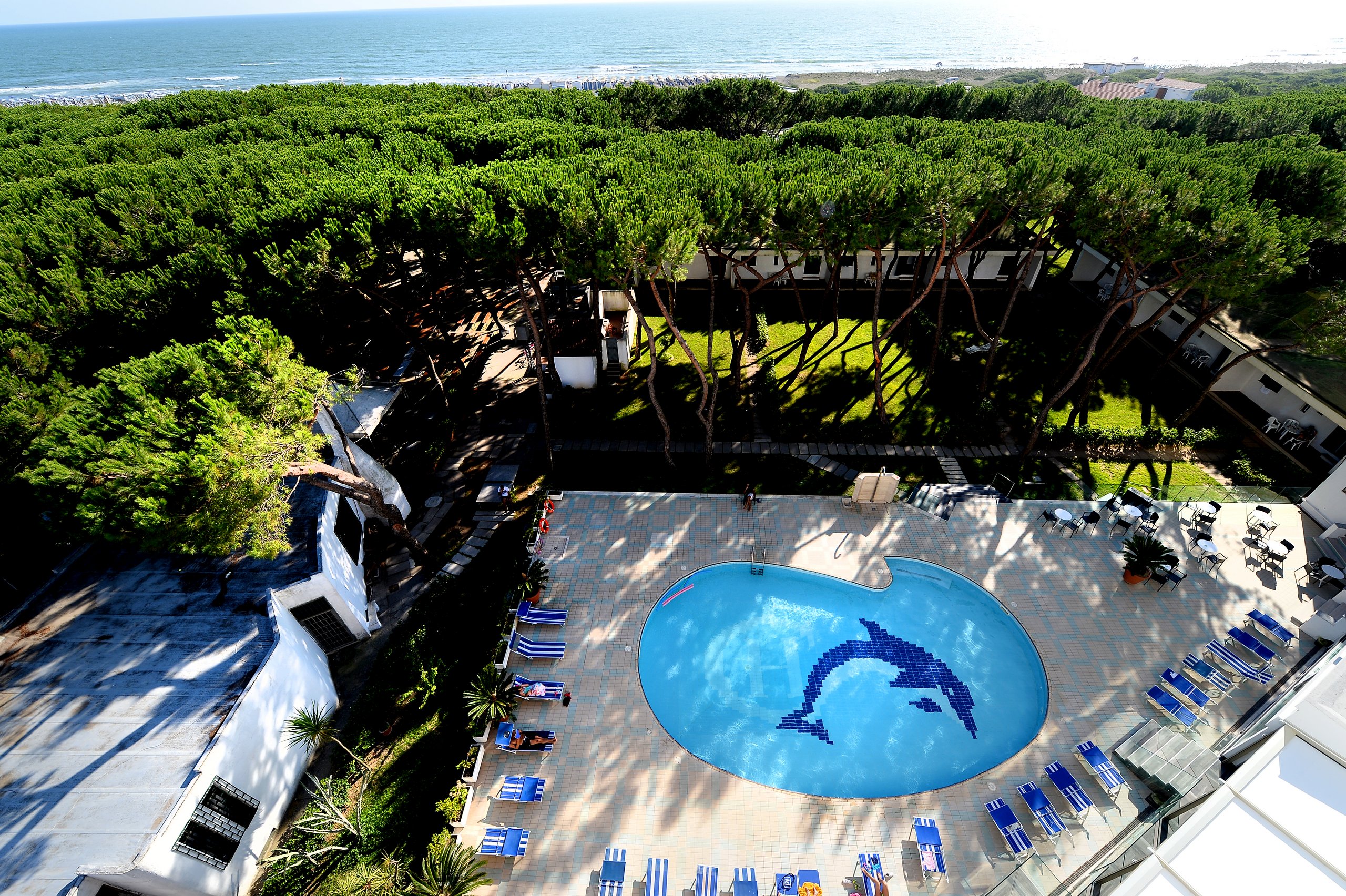 Ausstattung: Restaurant, 2 Bars, Aufzug, 2 Schwimmbäder (nur in Hochsaison in Betrieb), Privatstrand, Konferenz- und Veranstaltungsräume, Sonnenterrasse, Fitnessraum, Sauna, Bocciabahn, großer Garten