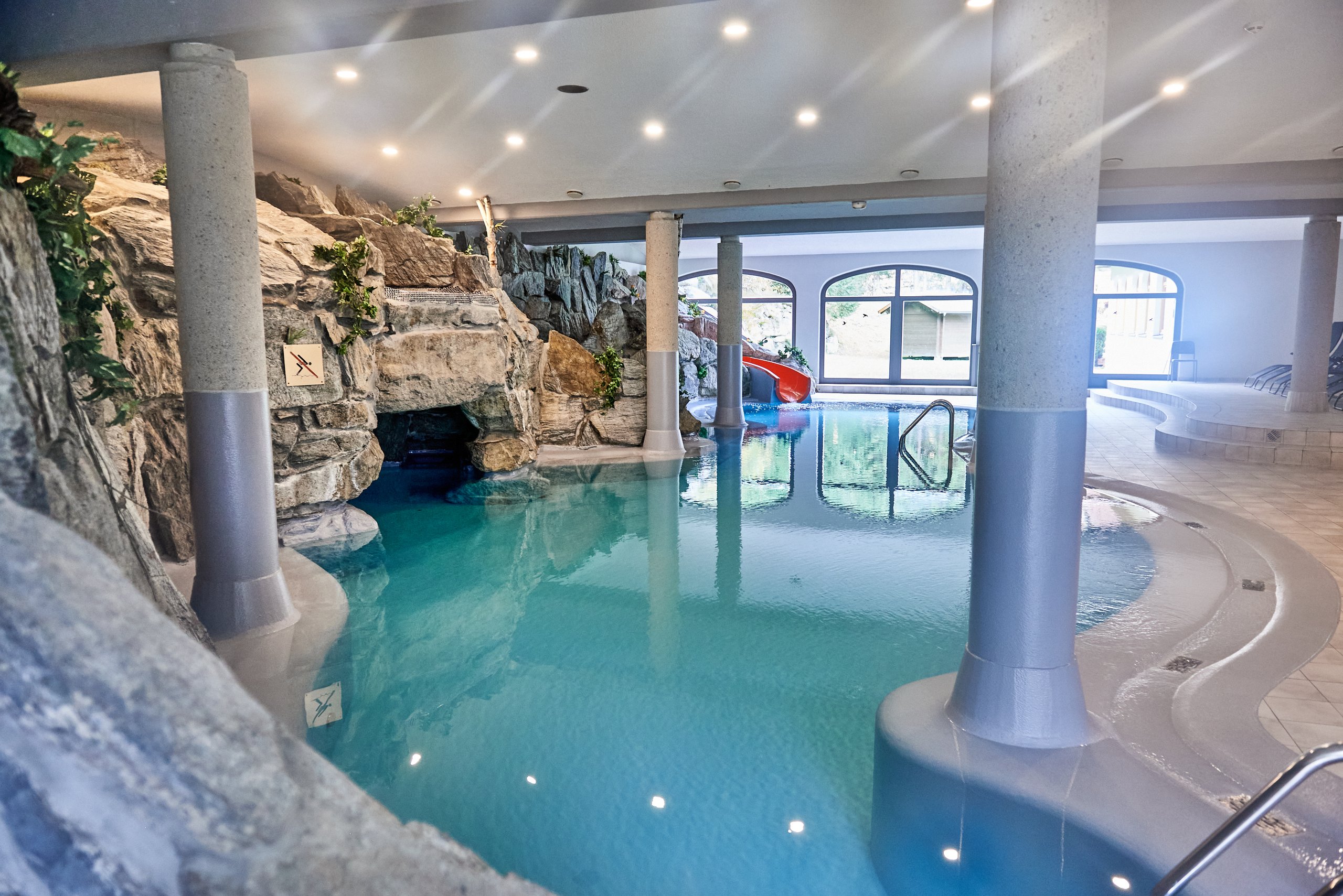 Ausstattung: Restaurant mit gemütlicher Kaminstube, Bar, Free WiFi in der Lobby, Kastaniengarten mit Spielplatz, Liegewiese, 2 Aufzüge, Spielzimmer, Wellnessbereich mit Hallenbad, Saunagrotte mit Sauna und Fitnessraum. Außerdem stehen ein Fahrradkeller und ein beheizter Skikeller zur Verfügung