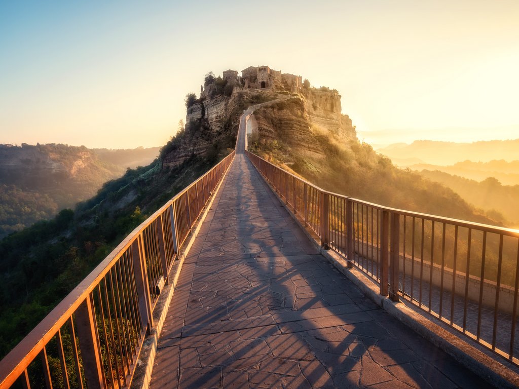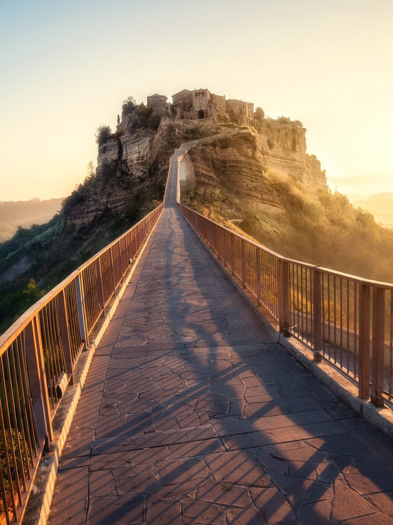 Am Nachmittag geht es durch das beeindruckende Tal der Kalkrinnen nach Civita di Bagnoregio, der sogenannten „sterbenden Stadt“ in einzigartiger Lage auf einem Tuffstein-Felsen