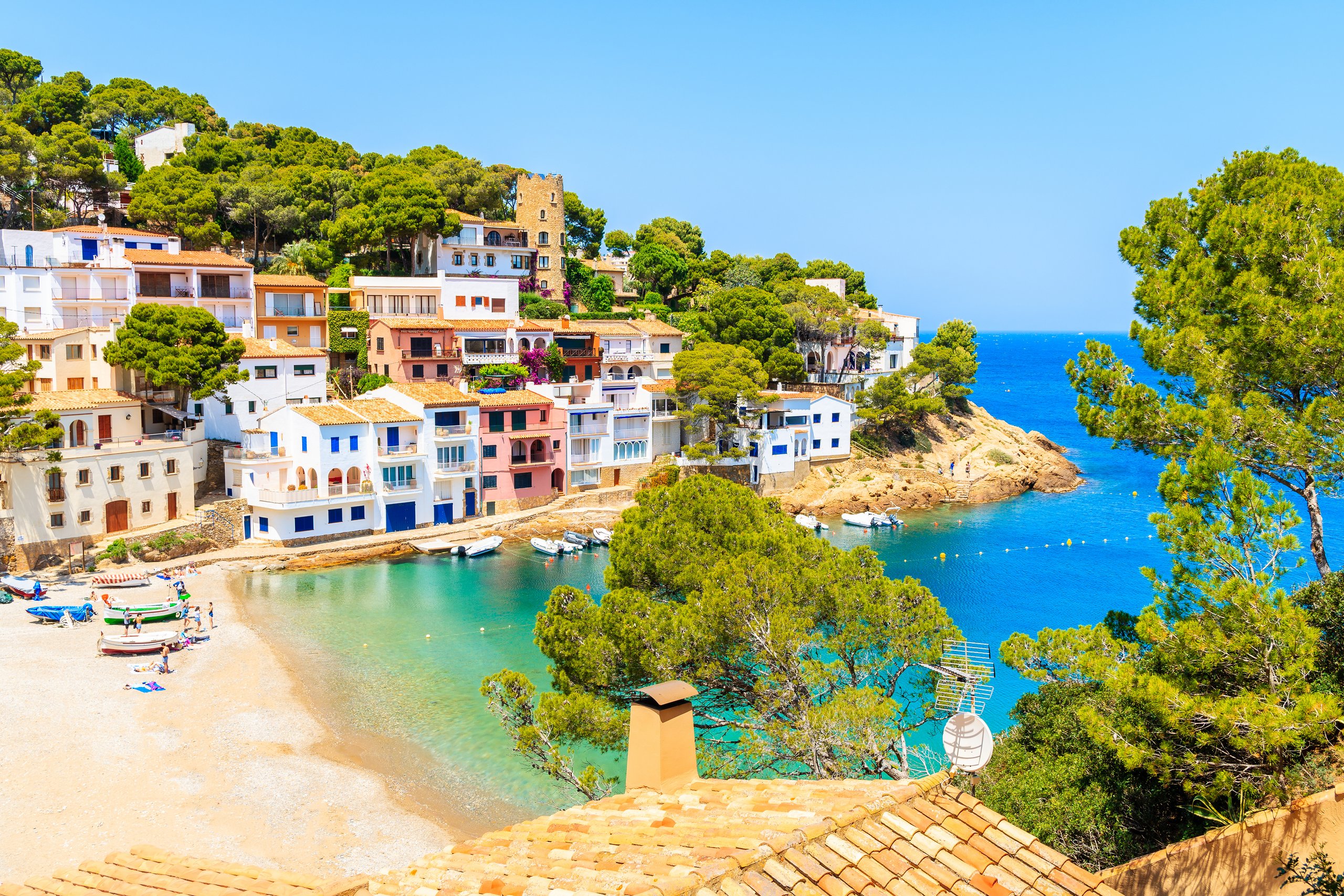Drive along the breathtaking cliffs and golden sandy beaches of the Costa Brava. First stop in Begur, the city of watchtowers, where the mountains plunge into the Mediterranean and give the town centre its special charm, characterized by traditional flair, with its ruins of a simple knight's castle from the 15th century. The tour continues to Pals, known for its Gothic-medieval old town, which is one of the most picturesque towns in the Costa Brava hinterland. Lunch break with a typical meal of Paella and Sangria. Back to Calella de Palafrugell, a former fishing village with small coves that has preserved its original charm.